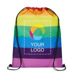 Advertise your brand on the move with this vibrant drawstring bag featuring a bold rainbow design. Made from durable polyester with a convenient shoulder strap that doubles as a closure.