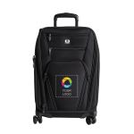 Crafted from durable polyester with stylish camo print accents, this spinner luggage offers a sturdy outer shell. An expandable, large main compartment and two large interior zippered mesh pockets provide ample space for all your travel essentials. Plus, the upper front zippered pouch and two lower front zippered stash pockets offer convenient storage for items you need easy access to, such as your travel documents, electronics or snacks. Additionally, a side ID storage pocket keeps your personal information safe – and the zippered side mesh water bottle pocket keeps your water bottle handy. What’s more, the locking retractable handle makes it easy to navigate busy airports. Customize it with your logo or artwork using our interactive studio and create a useful promotional giveaway your customers and prospects will appreciate. And if you have questions, reach out to our team of experts.