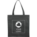 This reusable tote bag offers a slim design that works great for conventions and tradeshows. Made from non-woven polypropylene with 22-inch handles.