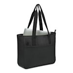 Keep your laptop and essentials organized while promoting your brand with this smart tote bag. Features stretch mesh pockets, zip compartments and fits laptops up to 16 inches.