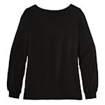 This women's knit top brings comfort and style to your workday wardrobe. Made with a soft rayon-spandex blend in a relaxed jewel neck silhouette.
