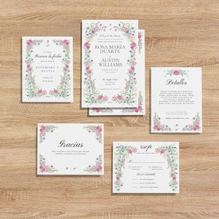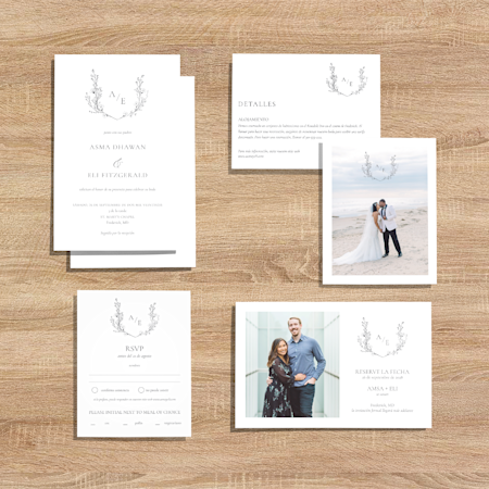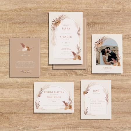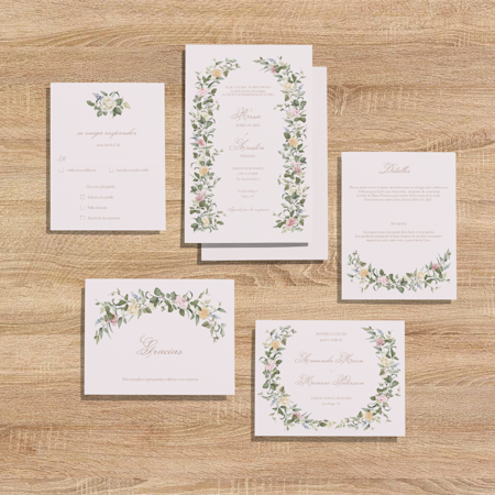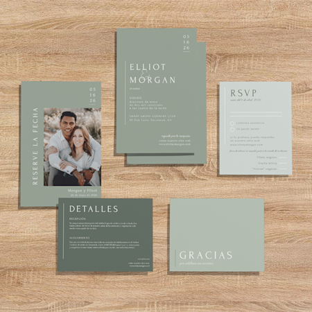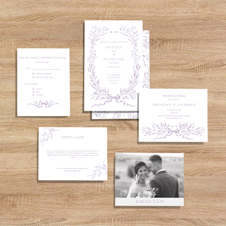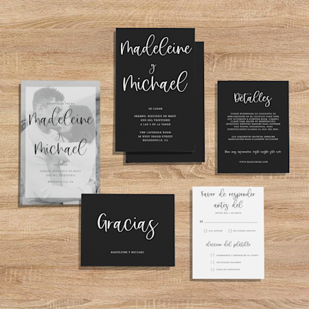 Una boda bonita empieza con artículos de papelería bonitos. Y con los conjuntos para bodas de VistaPrint, encontrará toda la papelería que necesita, todo en un solo lugar. Eso incluye elegantes invitaciones de boda con tarjetas de RSVP, tarjetas anexas y mucho más. Cada pieza está cuidadosamente diseñada por nuestro equipo interno, que investiga los temas de boda más populares y las últimas tendencias en artículos de papelería para crear colecciones selectas para una amplia gama de estilos. Ya sea que su estilo sea moderno o clásico, bohemio o botánico (¿o tal vez un poco de ambos?), encontrará algo que se adapte a sus gustos únicos. Considérelo su look de boda definitivo, en papel.