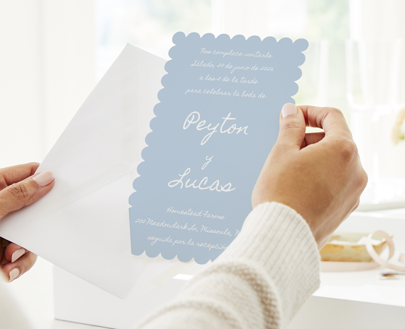 Ofrecemos asistencia para todas las etapas del proceso de planificación. ¿Está empezando de cero? Nos pondremos al teléfono para asesorarle sobre todos nuestros artículos de papelería. O tal vez encontró un diseño de tarjeta de boda en nuestras galerías... solo que el color no es exactamente el que quiere. Lo modificaremos hasta que lo sea. Y si desea algo realmente único, nuestros diseñadores gráficos para bodas pueden crear algo original solo para usted.