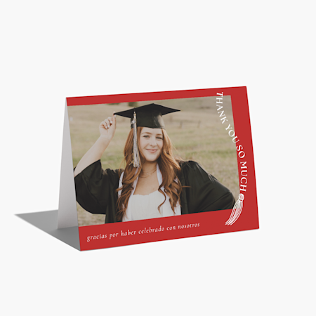 Los artículos de papelería para graduación también incluyen tarjetas de agradecimiento (recomendamos enviarlas a todos los que asistan a la fiesta o le hagan obsequios). (Consejo profesional: Hacer que los graduados más pequeños envíen tarjetas de agradecimiento es una gran lección para su vida adulta).