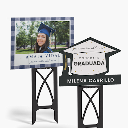Dato curioso: no es presumir cuando es algo que se han ganado. Dele a su graduado las felicitaciones que merece con artículos de papelería, carteles y pósteres y artículos esenciales para fiestas de graduación personalizados a precios con los que usted se llevará el diploma también (en ahorros, claro está). Nuestros divertidos diseños personalizados hacen que este hito tan especial lo sea aún más, creando un aspecto congruente y elevando a su estudiante al estatus de estrella. Solo tiene que agregar su nombre, foto o año de graduación a todo, desde carteles para el jardín hasta artículos para la fiesta de graduación, como servilletas y posavasos de papel. Incluso puede imprimir la sonrisa de su estudiante en una lona publicitaria o globos personalizados para la graduación (eso sí que es planificar una graduación al máximo nivel). Cuando todos se hayan ido, reviva los momentos felices con souvenirs como fotos con marco y en bloques acrílicos. Ah, y asegúrese de que su graduado envíe después tarjetas de agradecimiento a los invitados.