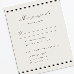 Cada invitación solicita una respuesta. Ahora, los invitados a la boda pueden responder de la forma más elegante con las tarjetas de RSVP letterpress. El aspecto y el tacto icónicos de la impresión tipográfica realzan este componente esencial del conjunto, creando un hermoso artículo de papelería que los invitados estarán encantados de enviar. Sus respuestas le ayudarán en todo, desde el recuento de invitados hasta las preferencias de comidas, por lo que la planificación se hace un poco más fácil, y más bonita.