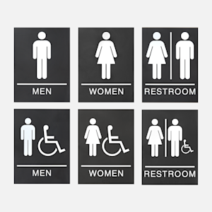 ¿Listo para crear sus letreros para baño personalizados? Comience por explorar nuestras distintas opciones para baño de hombres, de mujeres y sin género. Puede personalizar su opción eligiendo un letrero blanco o negro y agregando un ícono de accesible para silla de ruedas si lo desea. Luego nosotros nos encargaremos del resto y sus letreros para baño llegarán prearmados y listos para colgar.