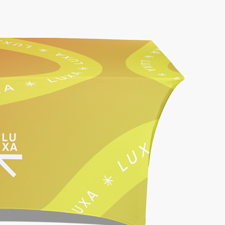 ¿Tiene un evento, feria comercial o cóctel? Convierta las aburridas mesas plegables blancas en obras maestras de su marca con los manteles personalizados. Su mesa es uno de los bienes raíces más importantes en el espacio del evento. Aprovéchelo al máximo agregando su logotipo, nombre de la empresa y otros elementos para el desarrollo de marca para que todas las piezas encajen y así captar la atención.