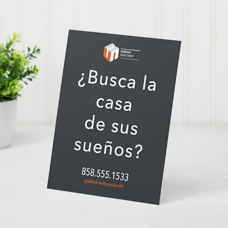 Usted ha trabajado arduamente para lograr que su inmobiliaria crezca. Permita que VistaPrint le ayude a captar nuevos clientes y construir relaciones en su comunidad, por medio de nuestra selección de carteles y pósteres para inmobiliarias. Con nuestros productos personalizables, podrá crear carteles para exteriores impresionantes y coloridos para anunciar propiedades a la venta, lonas para open houses o placas de información que indiquen que la propiedad se vendió y para colocarlos en aceras, jardines o cerca de calles muy transitadas. Y cuando desee anunciarse sobre la marcha, adorne su auto con imanes y vinilos para ventana con su logotipo e información de contacto.