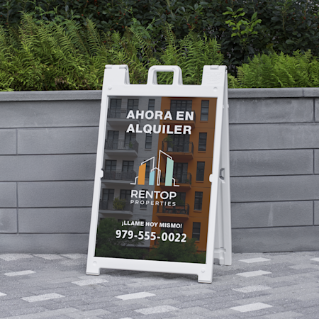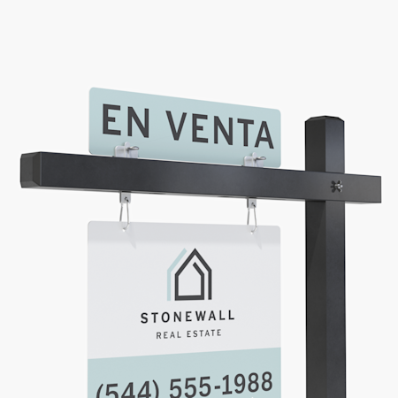 Nuestros carteles para exteriores vienen en 5 tamaños diferentes. Recomendamos que elija el de 18" x 24", que es el tamaño estándar para la mayoría de carteles de venta inmobiliaria.