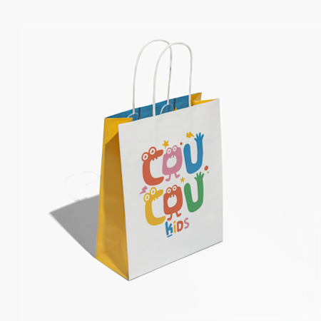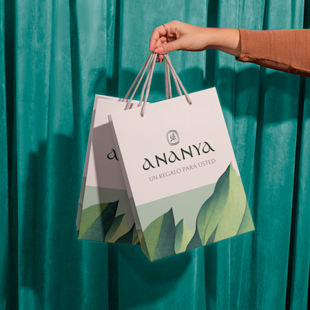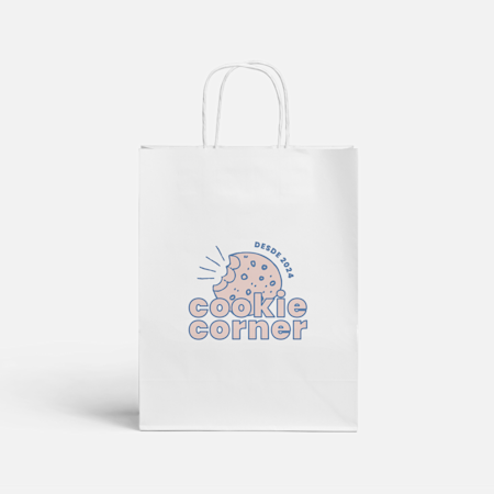 Ofrecemos bolsas de compras con 2 tipos de asas: de papel trenzado o de cordón. También ofrecemos bolsas con asa troquelada, las cuales están hechas de plástico o materiales compostables.