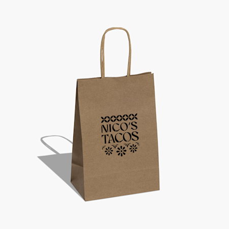 Lleve sus empaques a otro nivel usando bolsas para compras personalizadas que hacen que su marca sea la protagonista. Entregar al cliente una bolsa de papel con marca, con su logotipo, no sirve solo para que lleve productos. También deja una impresión que perdura y da visibilidad a su marca. Piense que son como una tarjeta de presentación que llevarán por todas partes. Las bolsas impresas de VistaPrint son vibrantes, llamativas y están diseñadas para mejorar la experiencia del cliente. Ya sea que administre una tienda física, un negocio de comercio electrónico, tenga un restaurante de comida para llevar, asista a eventos y ferias comerciales o reparta obsequios, tenemos la bolsa para usted. Desde bolsas de papel a todo color prémium hasta bolsas de regalo de lujo, pasando por todo lo demás, incluidas bolsas reutilizables con asas troqueladas, bolsas de tela y bolsas para vino, son una forma rentable de potenciar su estrategia de mercadeo y ofrecer a los clientes algo que realmente utilizarán.