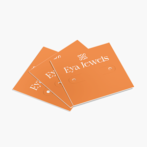 Nuestras etiquetas para joyería vienen en una variedad de formas y tamaños que se acomodan a su colección completa. Elija entre el acabado mate, brillante, escarchado o transparente para combinar con el estilo de su marca. Cada tarjeta viene precortada con los agujeros, ranuras o soportes correctos para aretes, anillos, pulseras o collares, incluyendo opciones para exhibir conjuntos de pulseras, aretes y collares. Si elije el material blanco mate o blanco brillante, podrá imprimir en ambos lados, lo que le brinda espacio para agregar su historia, información de las redes sociales o instrucciones de cuidado. Por favor, tenga en cuenta que deberá sujetar los anillos en sus etiquetas para joyería plásticas usando un cierre como una brida. Estos no se incluyen con las etiquetas.