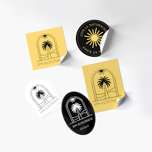 Empiece eligiendo las formas, tamaños y más opciones. Elegir una forma estándar le dejará ver nuestras plantillas personalizables o puede crear su propio diseño en nuestro estudio. Si elige una forma personalizada, el primero paso será subir su logotipo o gráfica. Nuestro estudio de diseño automáticamente creará una línea de corte personalizada para su adhesivo, con opciones de personalización adicionales. Una vez haya perfeccionado su diseño, imprimiremos sus etiquetas adhesivas individuales, las empacaremos y se las enviaremos.