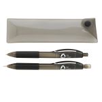Convierta la escritura cotidiana en una experiencia agradable con este dúo de bolígrafo y portaminas translúcidos con cómodos grips estriados. Mantenga sus herramientas de escritura organizadas y accesibles en su bolso o mochila con la bolsa protectora incluida. Es fácil de personalizar: agregue su logotipo, mensaje o información usando nuestro intuitivo estudio. ¿Necesita ayuda? Nuestros expertos en diseño están aquí para ayudarle a hacer realidad sus ideas.