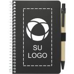 Eleve su espacio de trabajo con una práctica libreta que funciona también como bloc de notas portátil con bolígrafo incorporado. Ideal para apuntar ideas, organizar tareas o tomar notas sobre la marcha, esta libreta con espiral y bolígrafo le garantiza que siempre estará preparado para la inspiración. Es fácil de personalizar: añada su logotipo, mensaje o información mediante nuestro intuitivo estudio. ¿Necesita ayuda? Nuestros expertos en diseño están aquí para ayudarle a hacer realidad sus ideas.