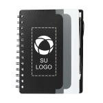 Tome notas en esta libreta con espiral de 5" x 7". Fabricada en un 100% de materiales reciclados, cuenta con dos bolsillos y un bolígrafo a juego.