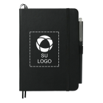 Descubra un versátil juego de libreta y bolígrafo diseñado para satisfacer sus necesidades de organización y toma de notas. Ideal para capturar ideas sobre la marcha, cuenta con páginas punteadas, marcadores de cinta y un práctico cierre elástico para guardarla de forma segura. Es fácil de personalizar: agregue su logotipo, mensaje o información usando nuestro intuitivo estudio. ¿Necesita ayuda? Nuestros expertos en diseño están aquí para ayudarle a hacer realidad sus ideas.