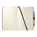 Capture sus ideas en este diario personalizado. Incluye 80 hojas de papel rayado, cierre elástico y un bolígrafo de bambú.