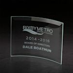 Celebra los logros con este premio de cristal curvado que presenta un borde biselado. Hecho en EE. UU. con cristal de calidad.