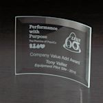 Celebra logros con un premio de vidrio curvado que presenta un borde biselado. Hecho en EE. UU. con vidrio de calidad.