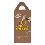 Cause una impresión memorable con estos martillos de chocolate en una caja troquelada que transmite su mensaje de una forma única y creativa. Sorprenda a sus clientes de la industria de la construcción o utilícelos en eventos de creación de equipos, donde estas golosinas envueltas individualmente se convertirán en tema de conversación. Es fácil de personalizar: agregue su logotipo, mensaje o información usando nuestro intuitivo estudio. ¿Necesita ayuda? Nuestros expertos en diseño están aquí para ayudarle a hacer realidad sus ideas.