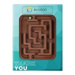 Desafíe a su equipo con un delicioso laberinto de chocolate que recompensa la resolución de problemas con un sabroso manjar. Empaque totalmente personalizable con una ventana que muestra una barra de chocolate con leche y una bola de caramelo.