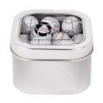 Satisfaga sus dulces antojos con esta elegante lata de chocolates en forma de pelotas de béisbol. Personalícela con su logotipo, eslogan y mucho más.