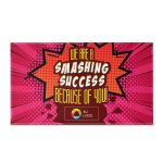 Muestra a los clientes y empleados que son valorados con este regalo interactivo de chocolate en forma de corazón para romper que crea una experiencia memorable y atractiva. Relleno de chocolate oscuro y nonpareils, llega en una caja troquelada a todo color con un dispositivo para romper para una revelación emocionante. Es fácil de personalizar: agregue su logotipo, mensaje o información usando nuestro intuitivo estudio. ¿Necesita ayuda? Nuestros expertos en diseño están aquí para ayudarle a hacer realidad sus ideas.