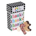 Deleita las papilas gustativas y esparce alegría navideña con dulces festivos que presentan piezas de corteza de menta con forma de bastón de caramelo y pan de jengibre. Comparte este dulce regalo con colegas, clientes o seres queridos para hacer que las celebraciones de temporada sean más memorables. Es fácil de personalizar: agregue su logotipo, mensaje o información usando nuestro intuitivo estudio. ¿Necesita ayuda? Nuestros expertos en diseño están aquí para ayudarle a hacer realidad sus ideas.