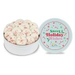 Deleita a tus destinatarios con galletas cubiertas de menta en una lata personalizada.