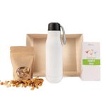 ¿Busca disfrutar de una bebida refrescante mientras va sobre la marcha? Entonces este kit de cóctel Verterra es definitivamente lo que busca. Este kit incluye un vaso aislado al vacío que conserva la bebida fría o caliente en todo momento y lugar. Este vaso personalizable viene con un asa elástica para cargar fácilmente. Además, obtiene una bolsita de papel Kraft reciclable con todo tipo de frutos secos. Este kit incluye una caja de mezcla para Martini de McSteven’s®, servido en una bandeja biodegradable. Agregue sus propios toques (el logotipo de su compañía, eslogan o información de contacto) usando nuestro estudio de diseño. Y si necesita ayuda mientras diseña, siempre puede comunicarse con nuestros expertos en diseño.