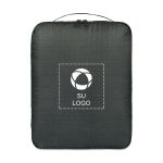Mantenga el orden en sus viajes con este eficiente organizador de maletas que mantiene la ropa perfectamente doblada y comprimida, eliminando el volumen extra en su equipaje. Ideal para viajes de negocios o vacaciones familiares, ayuda a maximizar el espacio en la maleta y mantiene todo accesible y sin arrugas. Es fácil de personalizar: agregue su logotipo, mensaje o información usando nuestro intuitivo estudio. ¿Necesita ayuda? Nuestros expertos en diseño están aquí para ayudarle a hacer realidad sus ideas.