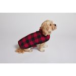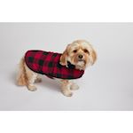 Mantén a tu cachorro abrigado en los días fríos con esta clásica chaqueta de tela polar a cuadros. Presenta micropolar de poliéster suave con correas ajustables para un ajuste seguro.