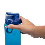 Manténgase hidratado sobre la marcha con esta botella de agua que cuenta con una tapa de bloqueo de botón y un asa de transporte integrada. Liviana y resistente.