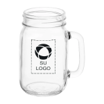Promocione su marca con este encantador tarro de vidrio con asa. Fabricado en vidrio sodocálcico resistente con un diseño rústico para beber de forma informal.