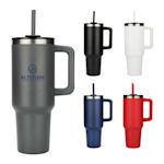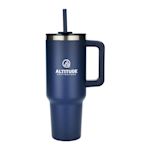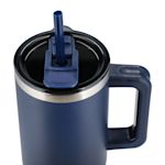 Manténgase hidratado todo el día con esta taza de viaje aislada de 40 oz que mantiene las bebidas frías durante más de 24 horas. Cuenta con aislamiento al vacío, una tapa giratoria segura y un asa ergonómica.