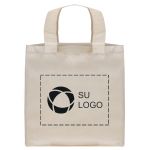 Marque estilo con esta elegante bolsa de algodón natural. Lleve la compra, libros o artículos de playa con cómodas asas que no le marcarán los hombros. Es fácil de personalizar: agregue su logotipo, mensaje o información usando nuestro intuitivo estudio. ¿Necesita ayuda? Nuestros expertos en diseño están aquí para ayudarle a hacer realidad sus ideas.