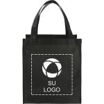Promocione su marca de forma eficaz con esta bolsa para compras de doble laminado, limpiable y personalizable. Tiene mucho espacio para cargar sus compras y a la vez es liviana para llevarla cómodamente. Esta bolsa reutilizable durará muchos años con el cuidado adecuado y es una gran alternativa a las bolsas de plástico. Dele el toque final con su logotipo usando nuestro estudio de diseño en línea para captar atención para su marca con cada uso.