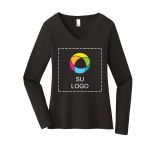 Camiseta District® Very Important Tee® de manga larga con cuello en V para mujer con impresión en todo el frente y en la espalda