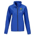 Manténgase seca y a la moda con la chaqueta liviana Elevate Flint para dama. Esta capa para la lluvia le ofrece una construcción impermeable. Es la compañera perfecta para los días lluviosos. Personalícela con su logotipo y promocione su marca - llueve o truene.