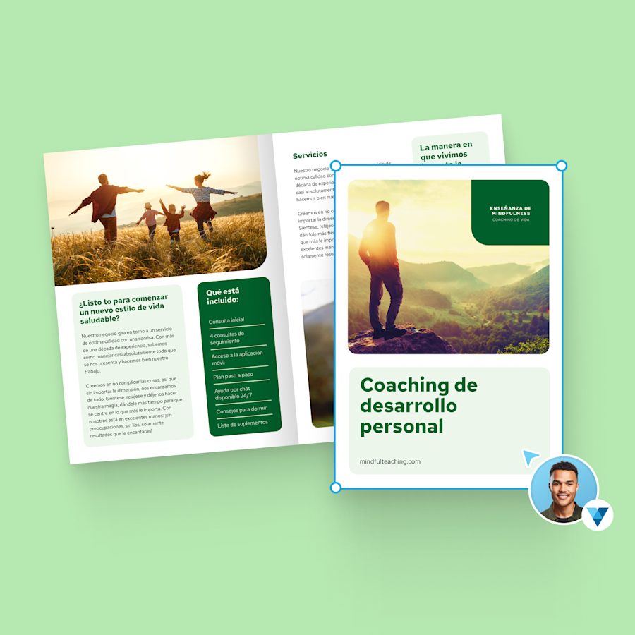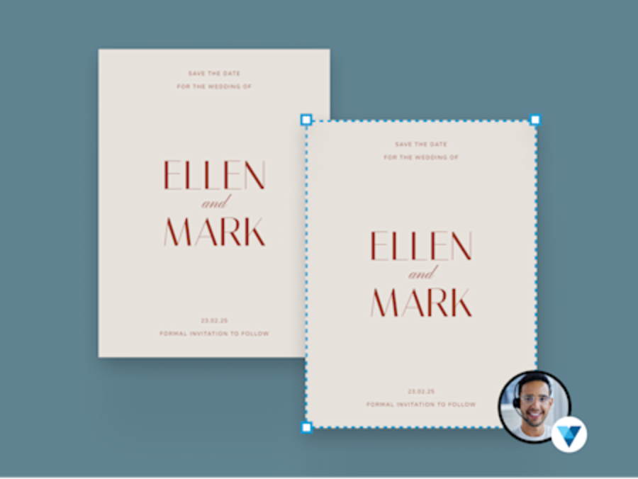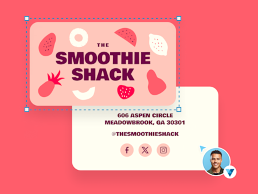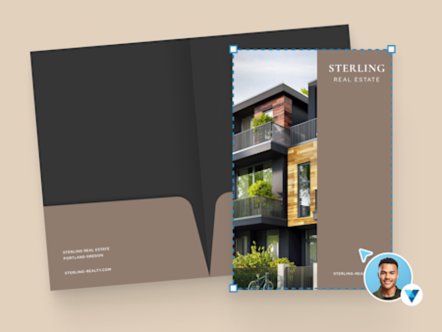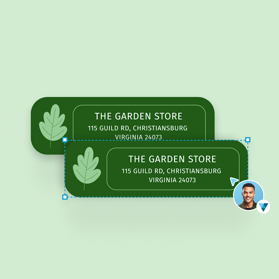 Todos sus diseños se guardan en su cuenta de VistaPrint, listos para imprimir en materiales de marketing, artículos promocionales, empaques y más.