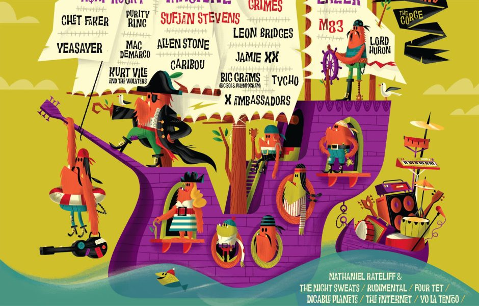Muted and artistic, Primavera Sound embodies the very European “less is more” aesthetic. Their posters and other collateral are decorated with beautiful, clean illustrations using a very harmonious color palette of peach, turquoise and gray midtones. There’s a lot of information on the website, which works well with their toned-down visuals. Unlike many American festivals that boast over-the-top art installations and fireworks, Primavera’s physical appearance emphasizes open space to give festival-goers a chance to enjoy the music without distraction.