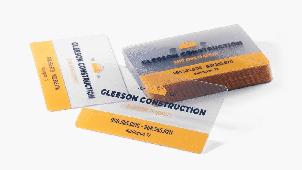Imagine a business card made of clear or frosted plastic instead of paper. This innovative material choice is modern and sure to grab attention. Plus, plastic business cards are a great way to communicate transparency in business.