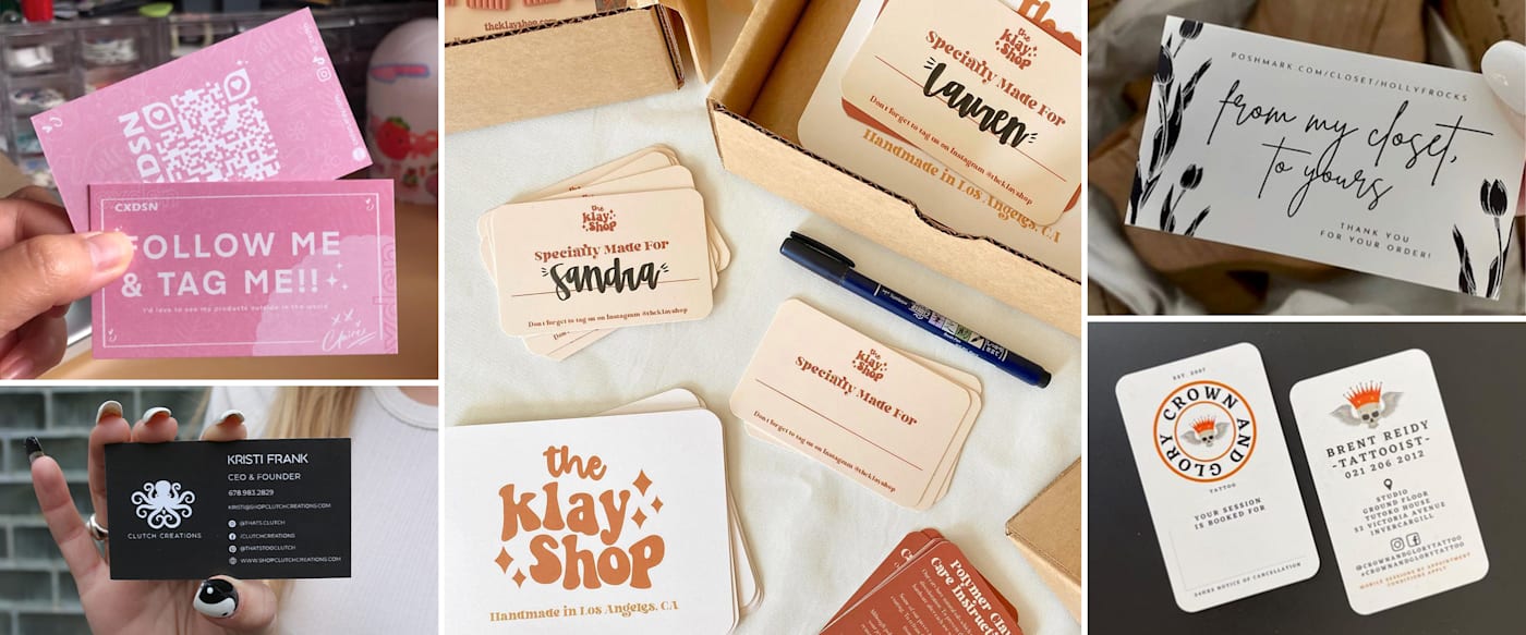 Adding a ‘thank you’ message to the back of your business card is an easy way to show appreciation to your customers. Whether you tuck one into their mailed order, like By Holly, or staple one to their receipt, it’s a simple gesture that can go a long way — and make their unboxing experience a little more special.
