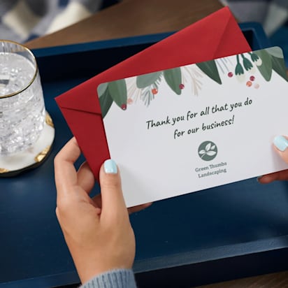 Business cards can be used for so much more than, well, business cards – especially during the holiday season. You might use business cards as referral tools all year, but right now is a great time to really lean into it. Generate some word-of-mouth marketing by placing a card with a special refer-a-friend perk in each order. Whether you offer free shipping, a festive freebie or a discount on their next purchase, you’re creating a thoughtful connection with your customer…and enticing them to come back. Don’t forget to show your appreciation for their loyalty by thanking them for their business as well.