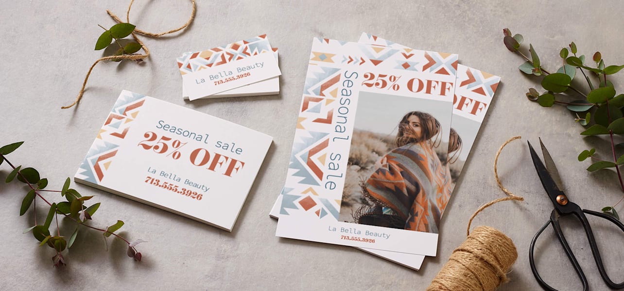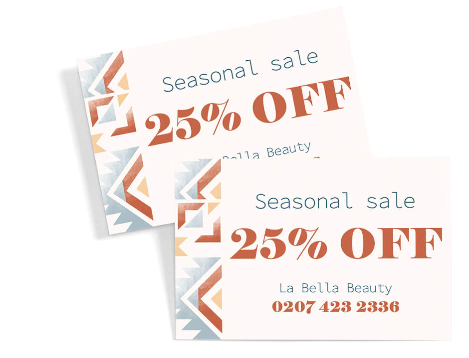 Make your business card work twice as hard – on one side, add a promotional offer or a punch-card design for in-store rewards.