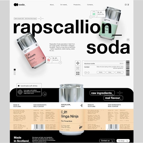 - Utilitarian layouts inspired by medical labels, shipping boxes and industrial packaging