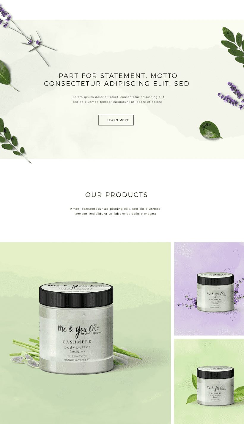 Using a neutral backdrop against contrasting elements in the foreground will highlight your branded visuals and products while directing visitors to calls-to-action and interactive buttons.