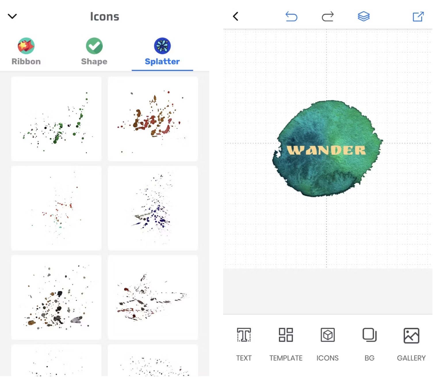 3. Watercolor Logo Maker (by Tap Flat Apps): Limited range is free, pay $10 to unlock all. Available only to iOS.